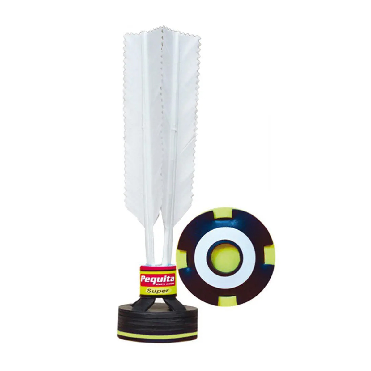 Peteca Pequita Oficial Super confeccionado com sinalizador e amortecedor. Toque macio e preciso, ideal para jogos noturnos. Possui presilha plástica rígida, que permite a padronização e o alinhamento correto das penas, além de aumentar a durabilidade.